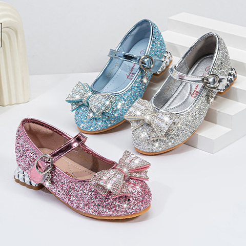 Kız elbise ayakkabı Glitter Sequins prenses düğün parti çiçek kız düşük topuklu okul performans dans yürümeye başlayan çocuk ayakkabıları