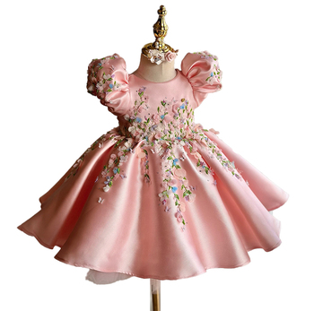 厂家批发幼儿派对儿童缎面礼服公主婚纱礼服女婴派对礼服女婴礼服舞会
