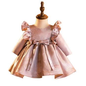 西部1岁女婴生日连衣裙高品质精品儿童派对装提花长袖童装